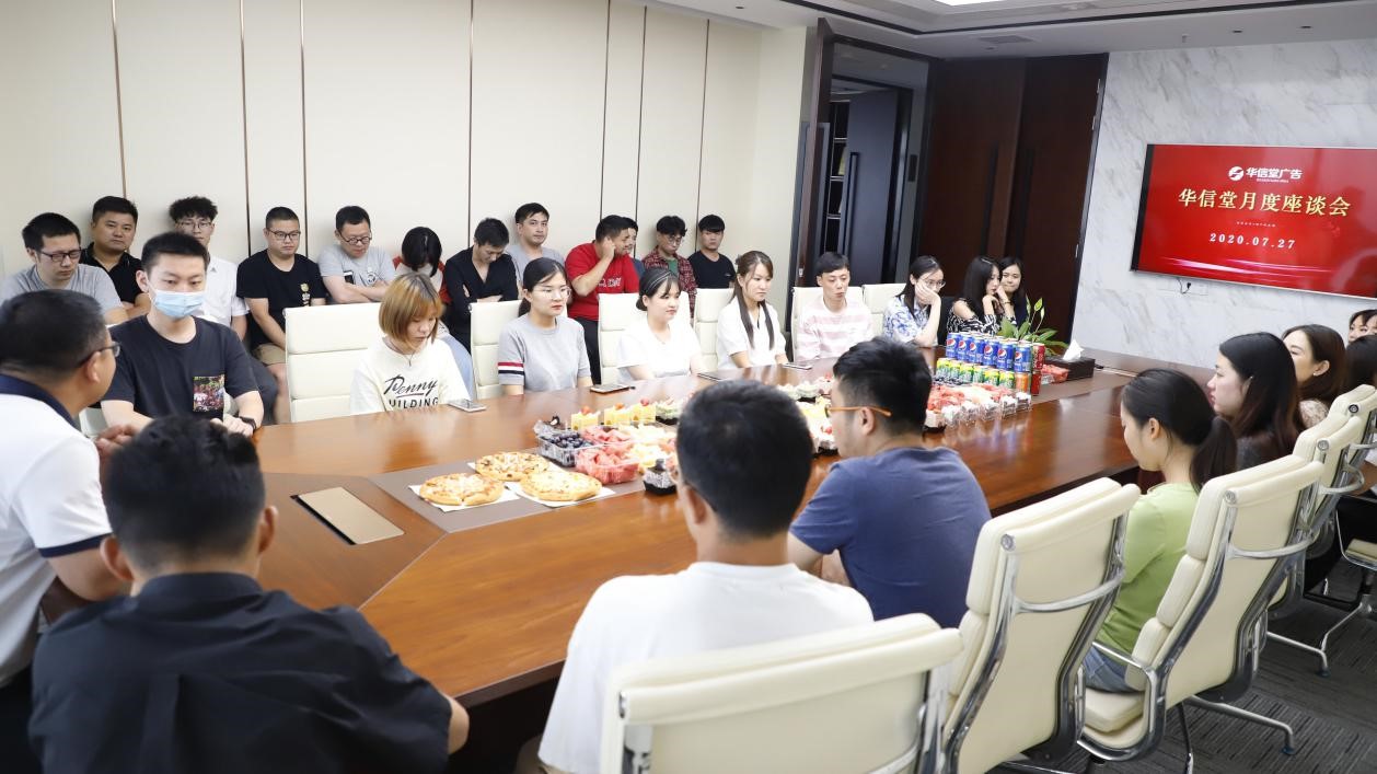 2020年7月27日下午,深圳市華信堂廣告月度分享座談會(huì)在合肥公司舉行,華信行地產(chǎn)常務(wù)副總王俊超及華信堂廣告公司合肥公司部分同事參加座談會(huì)。